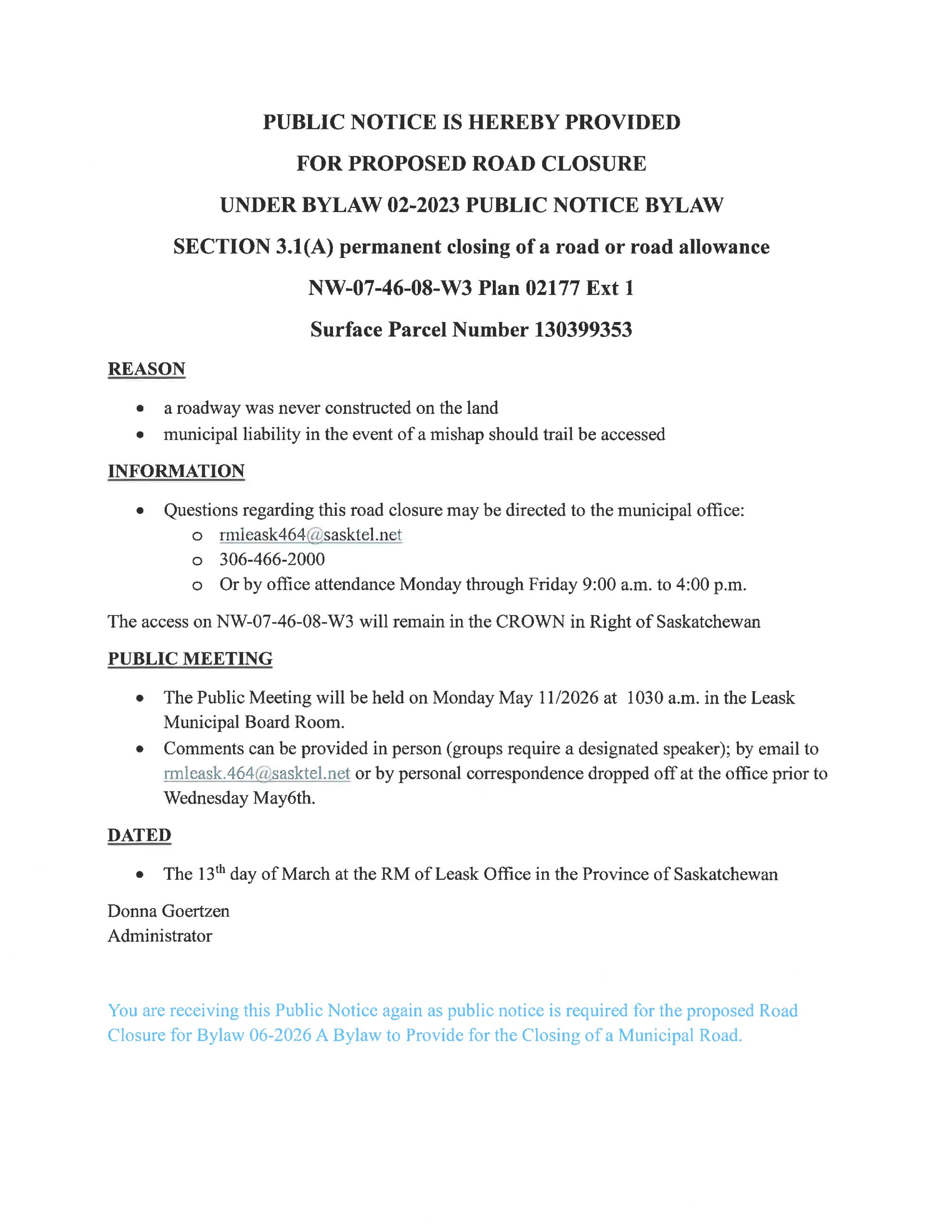 at the R.M. of Leask Office